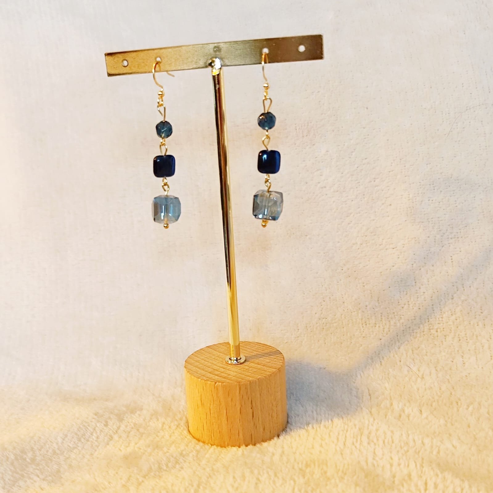 • Composition: perles oeil de chat bleues, cubes de cristal bleu